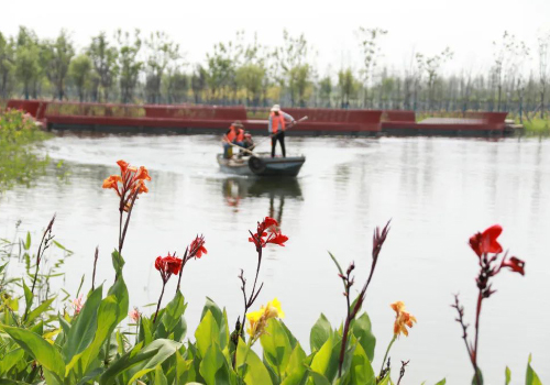 該工程于2018年6月開工,2019年5月進水調(diào)試,濕地設(shè)計水量: 5.5萬m3/d